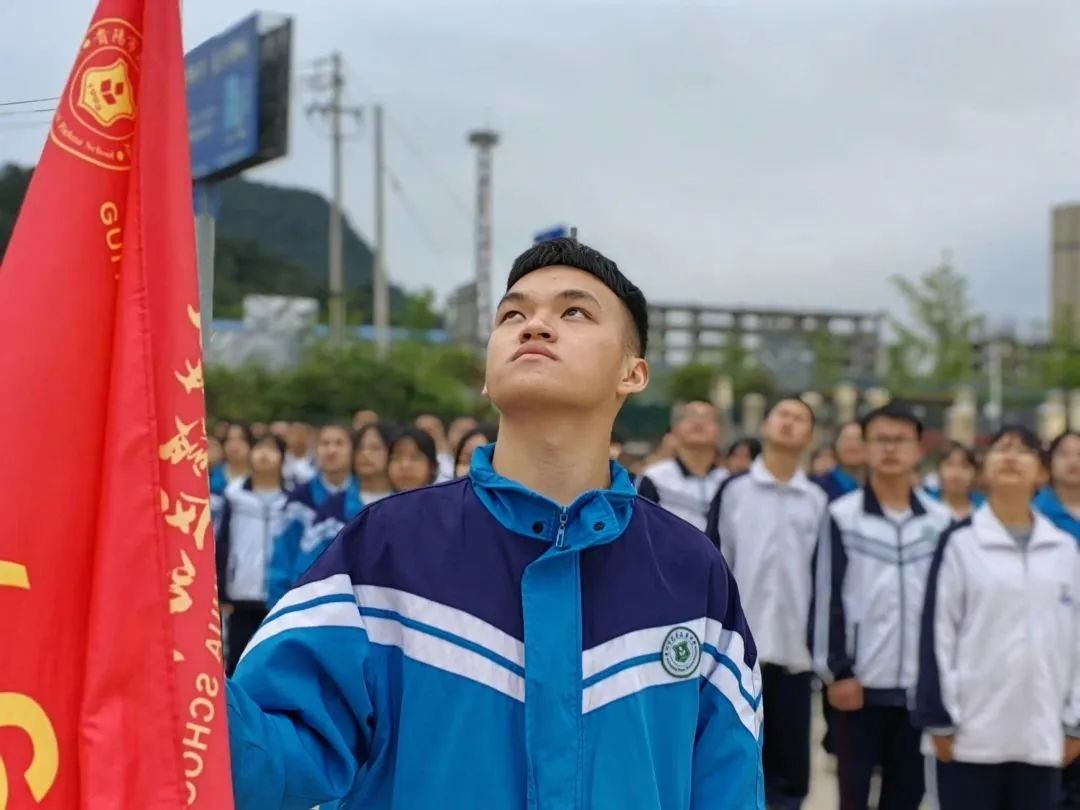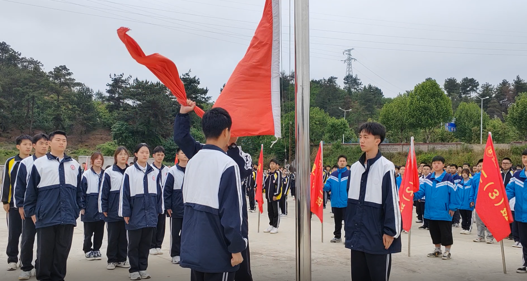 本周升旗仪式由高一7班苏馨雨同学担任主持人,在庄严肃穆的氛围中,升旗手和国旗护卫队的同学们迈着铿锵有力的步伐将国旗护送至升旗台。伴随着高亢激昂的义勇军进行曲,全体师生在国旗前立正,合唱国歌并行注目礼。