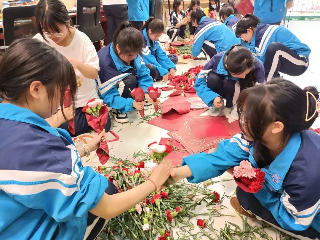 孩子们还亲手包了一束束鲜花